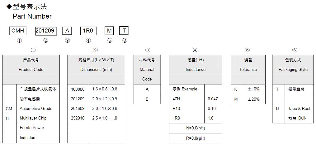 風(fēng)華高科疊層片式鐵氧體功率電感器命名規(guī)則: